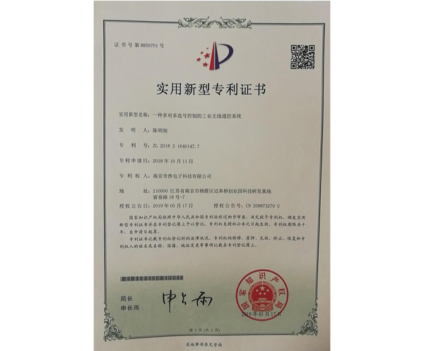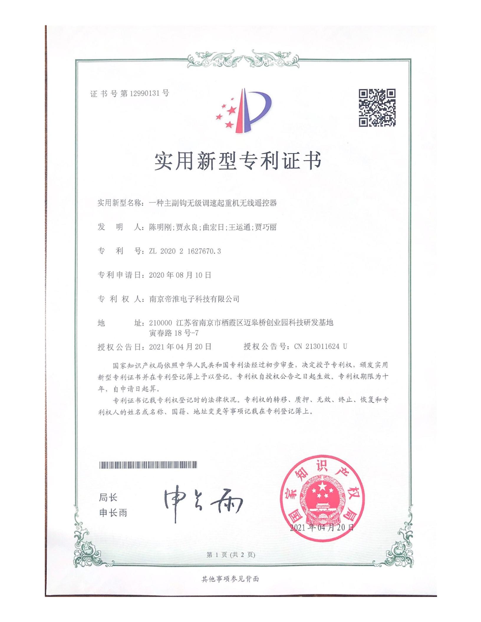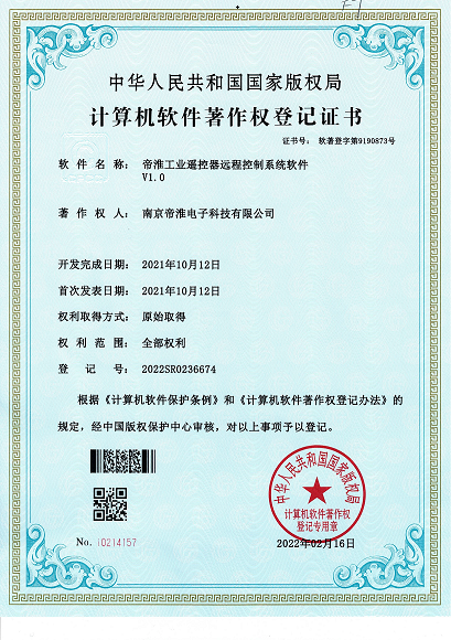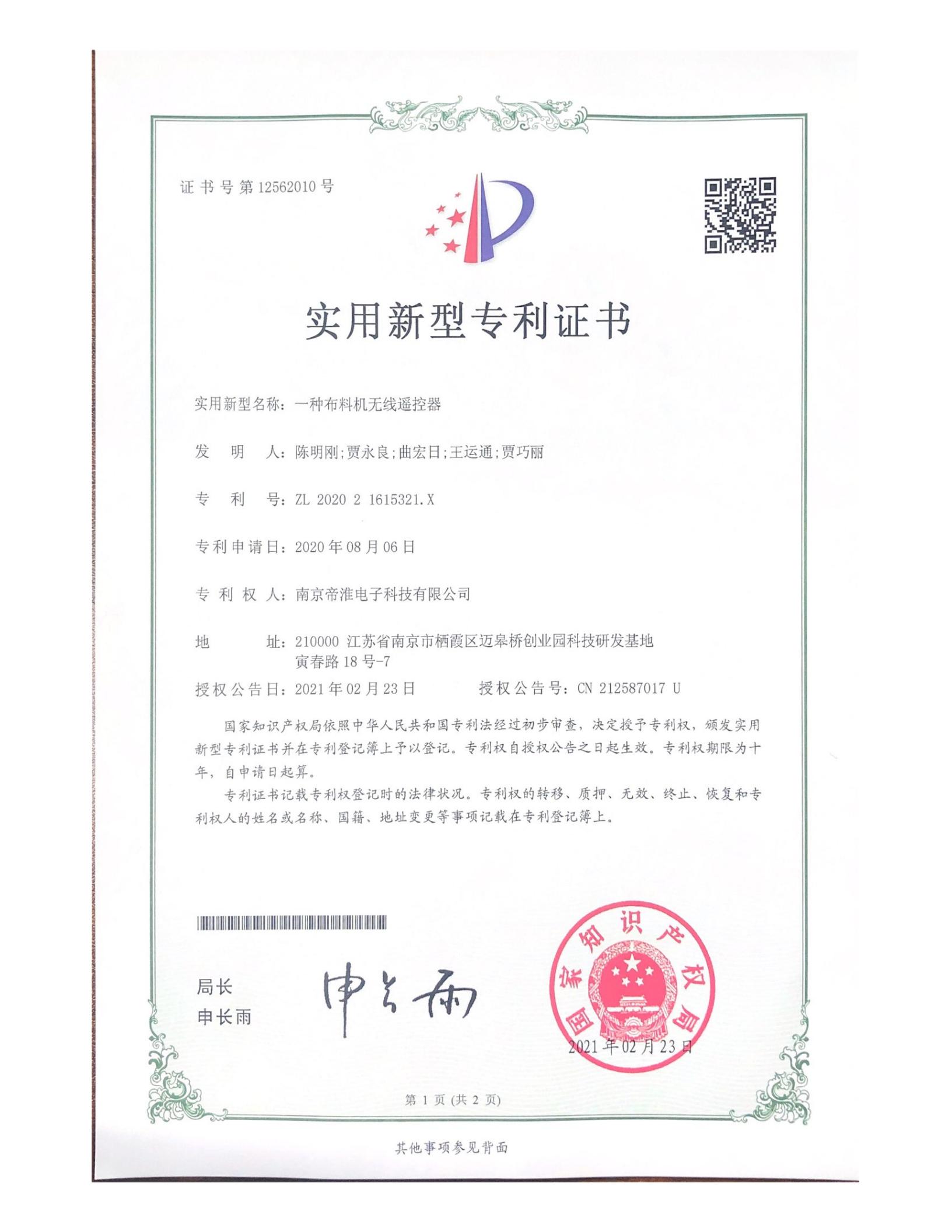 南京帝淮电子科技有限公司,国内工业??仄餍幸盗炀笠担灾餮蟹ⅰ⒍ㄖ啤⒎潜晟杓聘骼喙ひ导段尴咭?仄鳌⒐ひ导队邢呖刂破鳌⒅悄芑灾魉惴呒谋镜乜刂破鞯认盗胁?。已经申请及正在申请的技术专利、外观专利有近三十项左右,并通过了CE欧盟认证、国家级试验检验报告、EMC电磁兼容认证等。