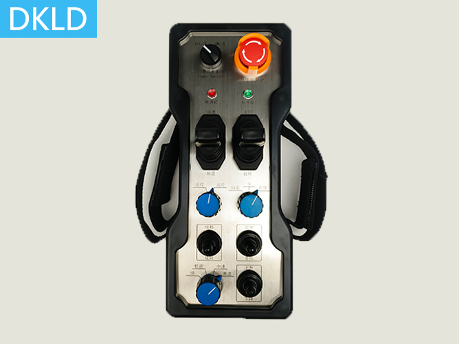 • 3个双轴摇杆+8个按键+1个两档旋转开关+1个5档旋转开关7寸触摸屏平板型工业无线??仄?/div>